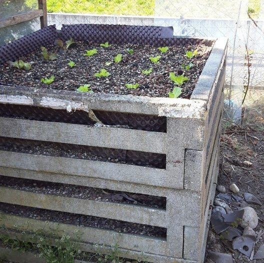 Aus dem alten Komposthaufen-Gerüst wurde ein Hochbeet erstellt.