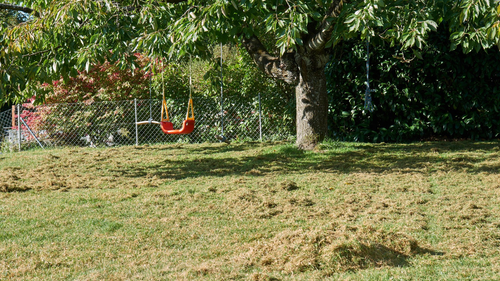 Sofern die Temperatur noch genügend warm und sonnig ist, können die aberen Stellen gut noch nachgesät werden (ca. Ende August bis Oktober / 16-23°C). Durch die viele Sonne im Sommer ist der Boden noch warm und hilft bei der Keimung der Rasensamen. Die nachgesäten Stellen sind dennoch 2-3x pro Tag zu bewässern.